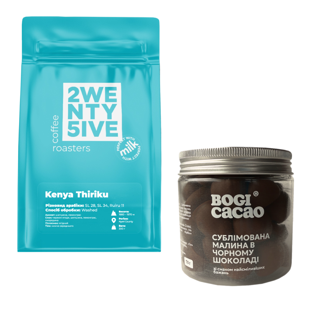 Комбо Berries Vibe: Kenya Thiriku + Сублімована малина в темному веганському шоколаді