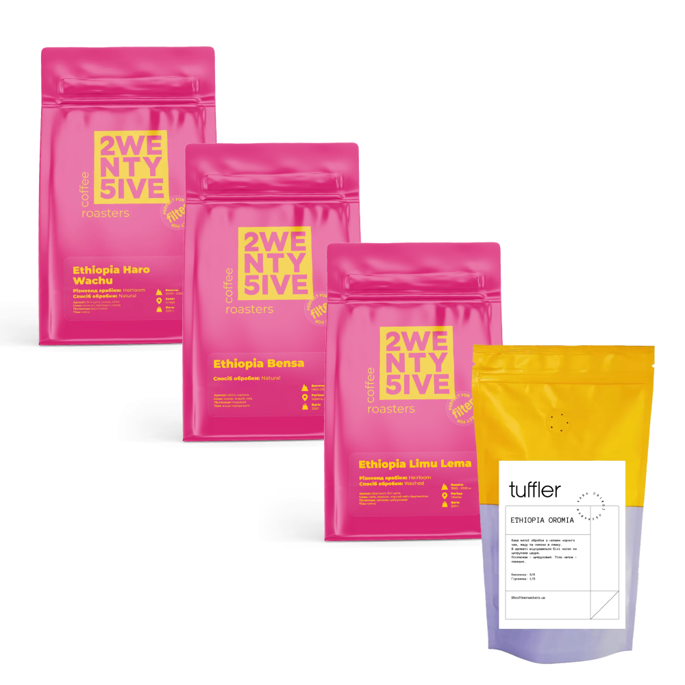 Four top-tier Ethiopian lots in one set — for those who truly appreciate flavor variety and can’t imagine life without legendary Ethiopian coffee.
