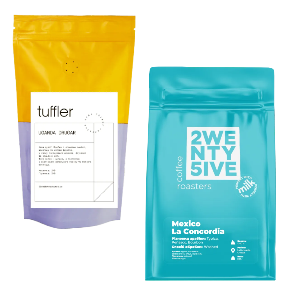 ● Uganda Drugar (250 г) — у смаку звучать ноти шоколаду, стиглих фруктів і легкий коньячний акцент. Аромат розкривається м’якою ваніллю та шоколадом, а фінал — це глибокий післясмак волоського горіха й темного шоколаду. Кава з характером, яка ідеально заходить для моментів, коли хочеться чогось більш насиченого.